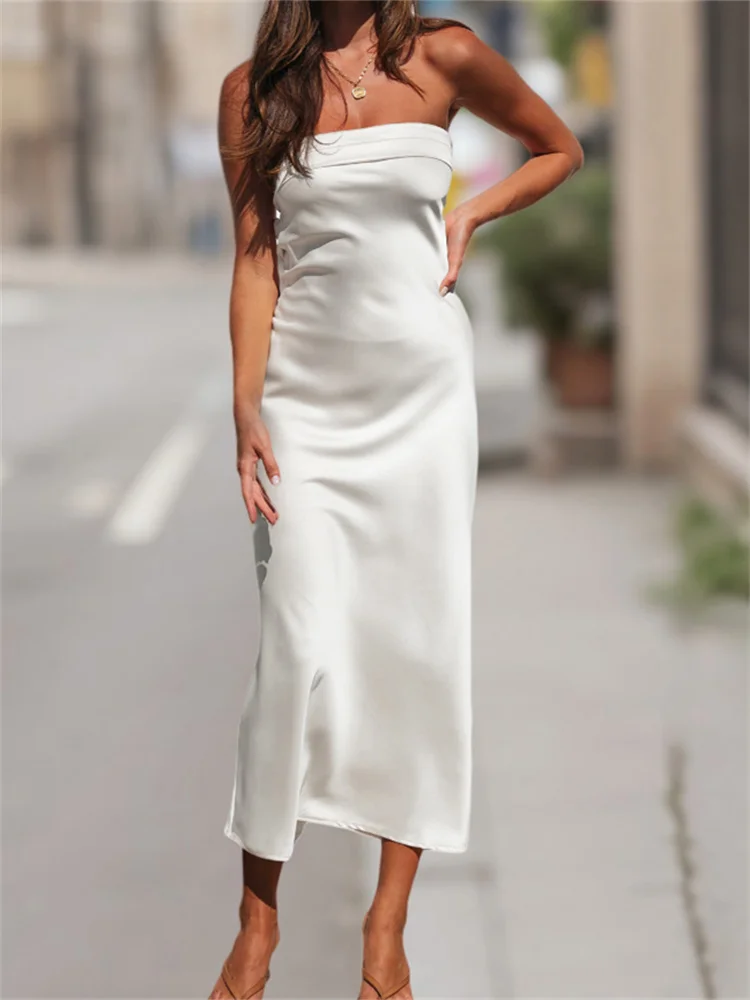 Women Summer Party Dress, Solid Color Glitter Shoulder Straps Sleeveless Open Back for Ladies