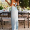 Women Cami Dress Solid Color Sleeveless Tie-Up Front Backless Dress Long Dress Summer Casual Dress